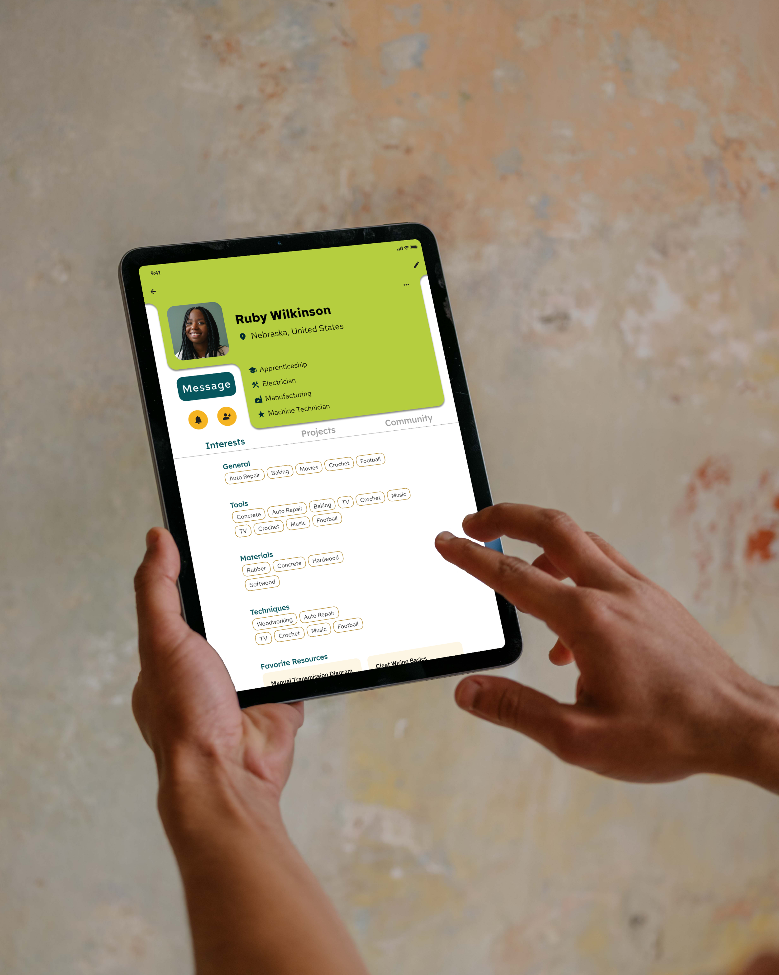 During sign-up, users input their trade, sector, and specialization, as well as their skills level.