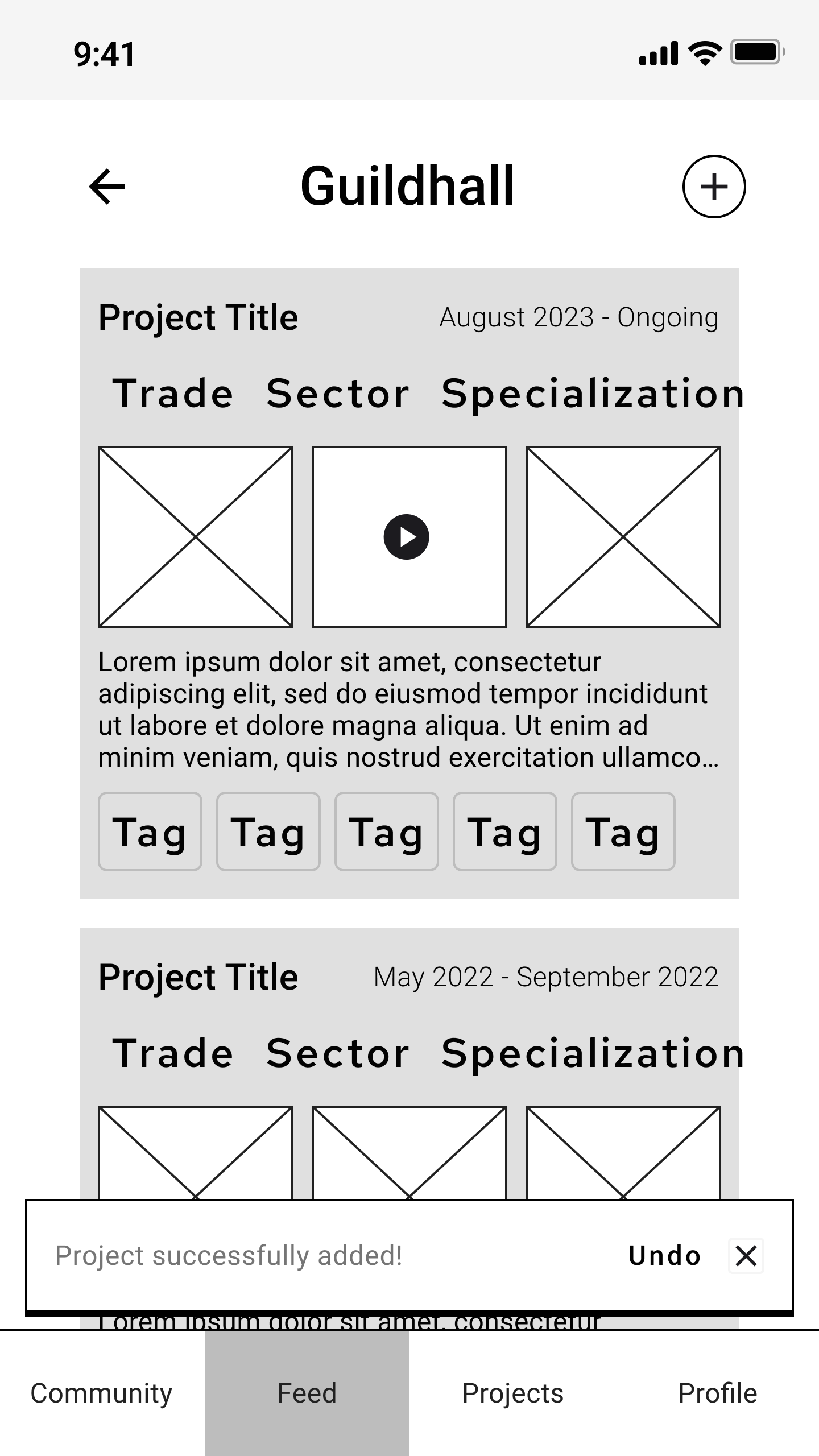A distinct UI component, to make Guildhall memorable for users. Profiles must allow users to display their Username, Education, Trade, Sector, Specialization, and Location.
