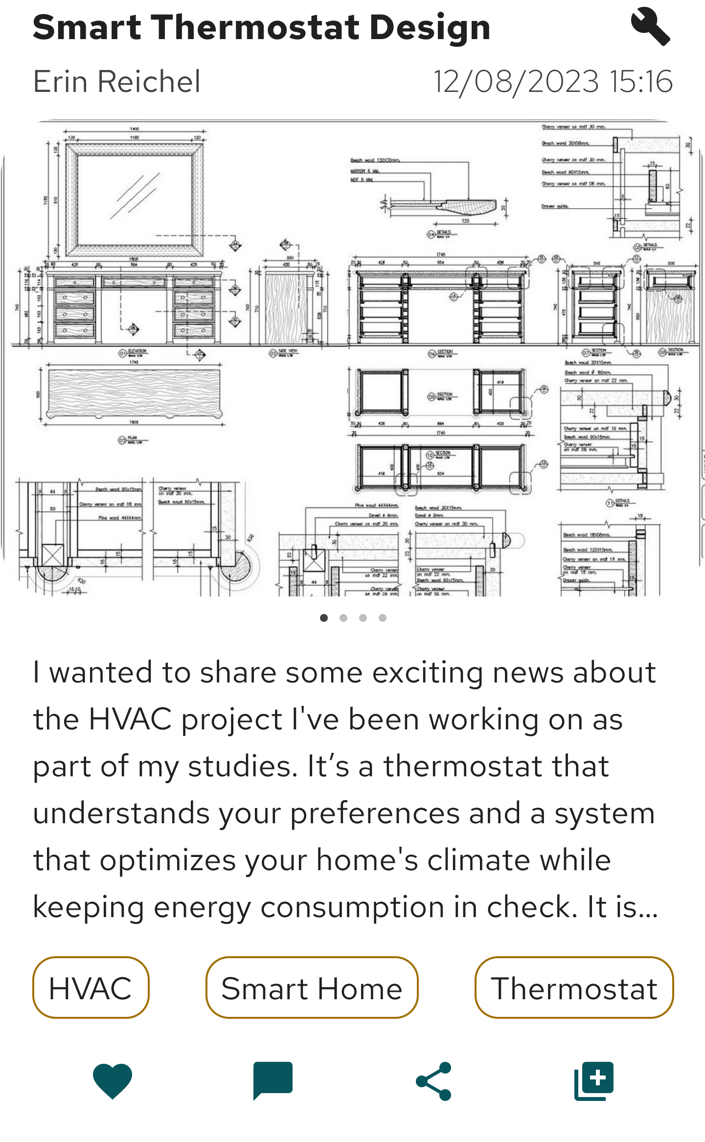 On their posts, users are able to attach projects of theirs, easily enabling users to receive feedback on their work from their peers.