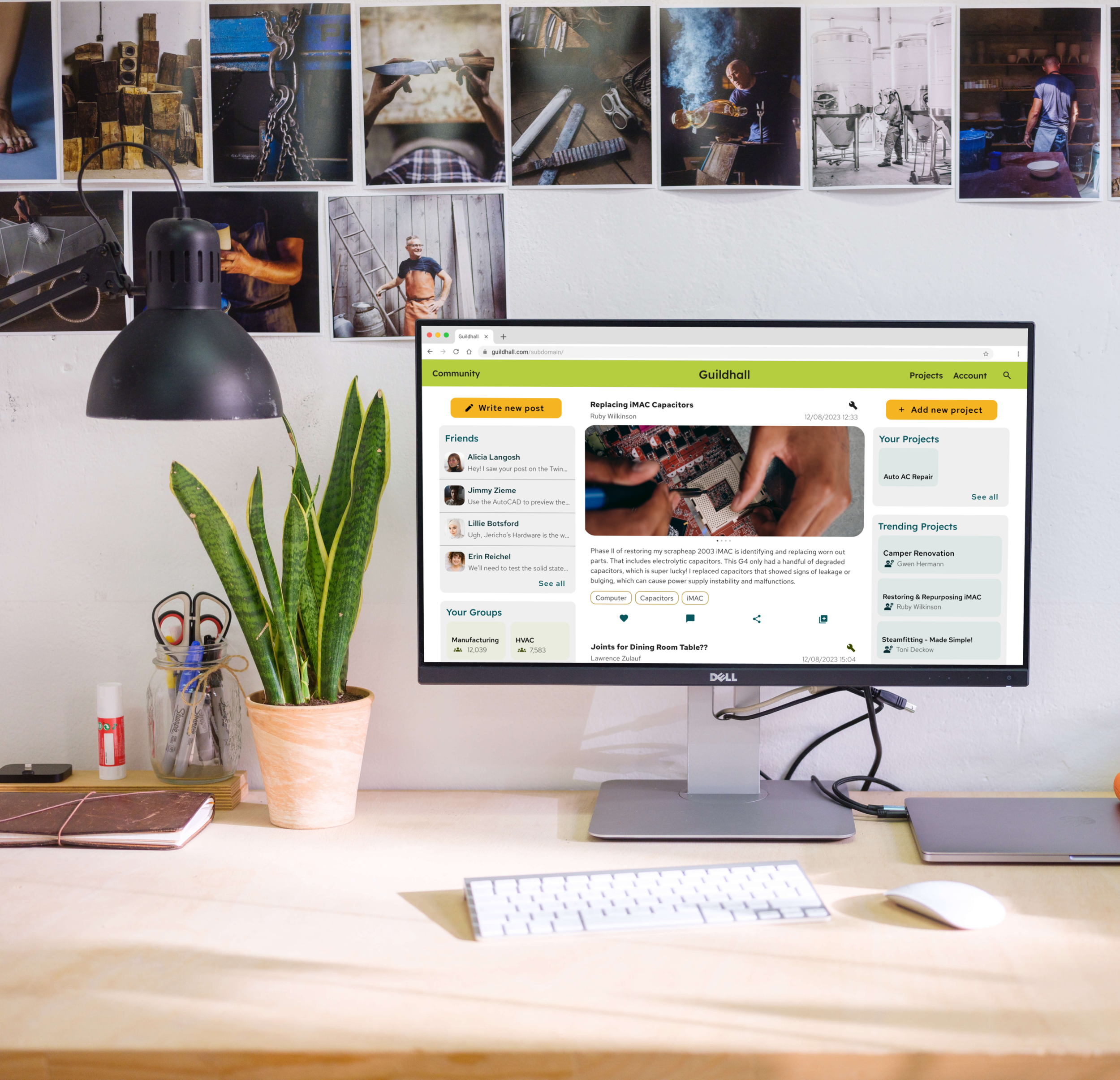 Guildhall, a responsive web app which facilitates communication, collaboration, and resource exchange between learners across the skilled trades. Guildhall helps apprentices, vocational students, and career-changers motivate each other to build & maintain great things!