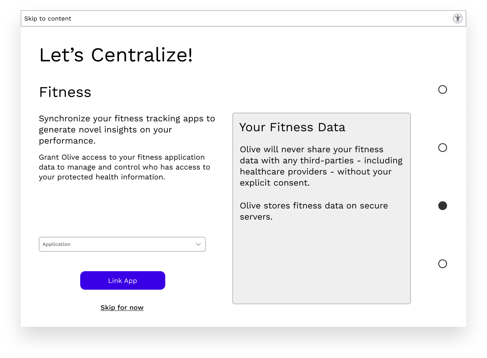 Olive is a health & wellness platform that empowers users to consolidate, control, analyze, and understand their medical, fitness, and wellness data.